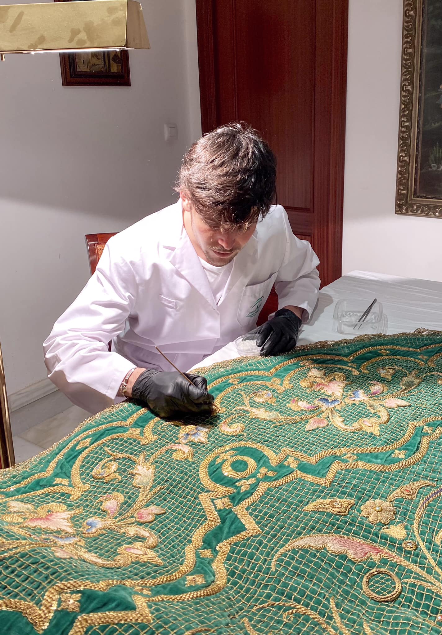 Conservación y restauración de indumentaria histórica y religiosa, bordados y tejidos patrimoniales.